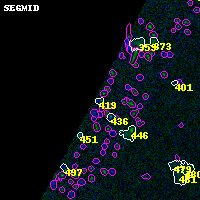 Black segments are analyzed here. Roll mouse over color images to view segments. Best viewed in a wide browser window (1200 pixels or more). Download SED & P(z) plots to view larger versions.