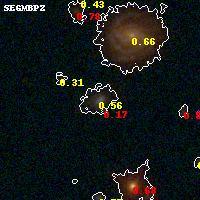 Black segments are analyzed here. Roll mouse over color images to view segments. Best viewed in a wide browser window (1200 pixels or more). Download SED & P(z) plots to view larger versions.