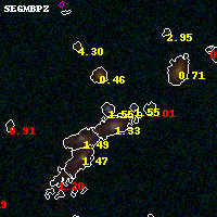 Black segments are analyzed here. Roll mouse over color images to view segments. Best viewed in a wide browser window (1200 pixels or more). Download SED & P(z) plots to view larger versions.