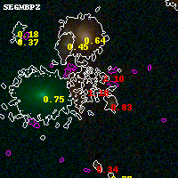 Black segments are analyzed here. Roll mouse over color images to view segments. Best viewed in a wide browser window (1200 pixels or more). Download SED & P(z) plots to view larger versions.