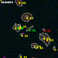 Black segments are analyzed here. Roll mouse over color images to view segments. Best viewed in a wide browser window (1200 pixels or more). Download SED & P(z) plots to view larger versions.