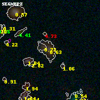 Black segments are analyzed here. Roll mouse over color images to view segments. Best viewed in a wide browser window (1200 pixels or more). Download SED & P(z) plots to view larger versions.