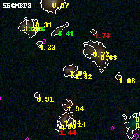 Black segments are analyzed here. Roll mouse over color images to view segments. Best viewed in a wide browser window (1200 pixels or more). Download SED & P(z) plots to view larger versions.