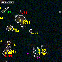 Black segments are analyzed here. Roll mouse over color images to view segments. Best viewed in a wide browser window (1200 pixels or more). Download SED & P(z) plots to view larger versions.