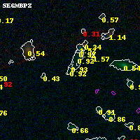 Black segments are analyzed here. Roll mouse over color images to view segments. Best viewed in a wide browser window (1200 pixels or more). Download SED & P(z) plots to view larger versions.