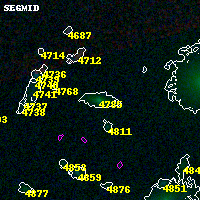 Black segments are analyzed here. Roll mouse over color images to view segments. Best viewed in a wide browser window (1200 pixels or more). Download SED & P(z) plots to view larger versions.