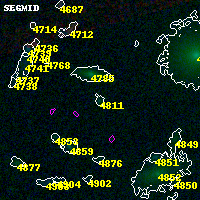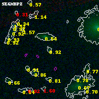 Black segments are analyzed here. Roll mouse over color images to view segments. Best viewed in a wide browser window (1200 pixels or more). Download SED & P(z) plots to view larger versions.