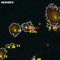 Black segments are analyzed here. Roll mouse over color images to view segments. Best viewed in a wide browser window (1200 pixels or more). Download SED & P(z) plots to view larger versions.