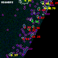 Black segments are analyzed here. Roll mouse over color images to view segments. Best viewed in a wide browser window (1200 pixels or more). Download SED & P(z) plots to view larger versions.