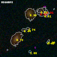 Black segments are analyzed here. Roll mouse over color images to view segments. Best viewed in a wide browser window (1200 pixels or more). Download SED & P(z) plots to view larger versions.