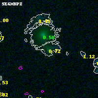 Black segments are analyzed here. Roll mouse over color images to view segments. Best viewed in a wide browser window (1200 pixels or more). Download SED & P(z) plots to view larger versions.