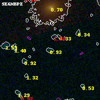 Black segments are analyzed here. Roll mouse over color images to view segments. Best viewed in a wide browser window (1200 pixels or more). Download SED & P(z) plots to view larger versions.