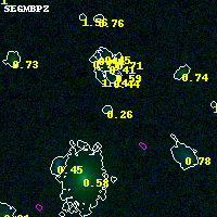 Black segments are analyzed here. Roll mouse over color images to view segments. Best viewed in a wide browser window (1200 pixels or more). Download SED & P(z) plots to view larger versions.
