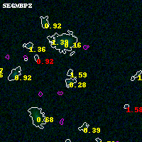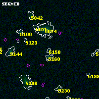 Black segments are analyzed here. Roll mouse over color images to view segments. Best viewed in a wide browser window (1200 pixels or more). Download SED & P(z) plots to view larger versions.