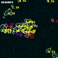 Black segments are analyzed here. Roll mouse over color images to view segments. Best viewed in a wide browser window (1200 pixels or more). Download SED & P(z) plots to view larger versions.