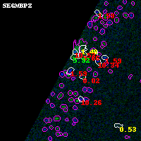 Black segments are analyzed here. Roll mouse over color images to view segments. Best viewed in a wide browser window (1200 pixels or more). Download SED & P(z) plots to view larger versions.