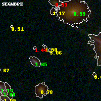 Black segments are analyzed here. Roll mouse over color images to view segments. Best viewed in a wide browser window (1200 pixels or more). Download SED & P(z) plots to view larger versions.