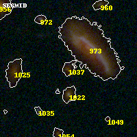 Black segments are analyzed here. Roll mouse over color images to view segments. Best viewed in a wide browser window (1200 pixels or more). Download SED & P(z) plots to view larger versions.