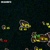 Black segments are analyzed here. Roll mouse over color images to view segments. Best viewed in a wide browser window (1200 pixels or more). Download SED & P(z) plots to view larger versions.