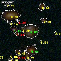 Black segments are analyzed here. Roll mouse over color images to view segments. Best viewed in a wide browser window (1200 pixels or more). Download SED & P(z) plots to view larger versions.