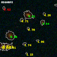 Black segments are analyzed here. Roll mouse over color images to view segments. Best viewed in a wide browser window (1200 pixels or more). Download SED & P(z) plots to view larger versions.