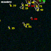 Object #1197   x,y = (2121, 1275)   RA, Dec = (01:37:26.640, -8:28:35.04) = (24.36100, -8.47640)   BPZ = 3.808 [0.527--4.245]   type = 9.10 (SB2_B10 - SB3_B10)   stellarity = 0.98   chisq2 = 0.45   ODDS = 0.63   z_cluster = 0.566