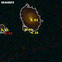 Black segments are analyzed here. Roll mouse over color images to view segments. Best viewed in a wide browser window (1200 pixels or more). Download SED & P(z) plots to view larger versions.