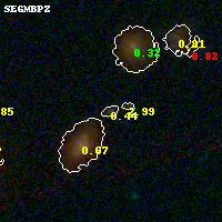 Black segments are analyzed here. Roll mouse over color images to view segments. Best viewed in a wide browser window (1200 pixels or more). Download SED & P(z) plots to view larger versions.