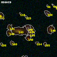 Black segments are analyzed here. Roll mouse over color images to view segments. Best viewed in a wide browser window (1200 pixels or more). Download SED & P(z) plots to view larger versions.