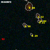 Black segments are analyzed here. Roll mouse over color images to view segments. Best viewed in a wide browser window (1200 pixels or more). Download SED & P(z) plots to view larger versions.
