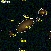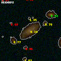 Black segments are analyzed here. Roll mouse over color images to view segments. Best viewed in a wide browser window (1200 pixels or more). Download SED & P(z) plots to view larger versions.