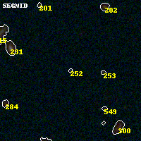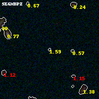 Black segments are analyzed here. Roll mouse over color images to view segments. Best viewed in a wide browser window (1200 pixels or more). Download SED & P(z) plots to view larger versions.