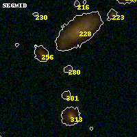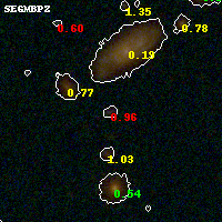 Black segments are analyzed here. Roll mouse over color images to view segments. Best viewed in a wide browser window (1200 pixels or more). Download SED & P(z) plots to view larger versions.