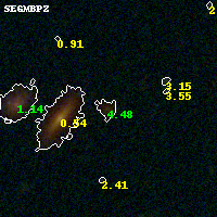 Black segments are analyzed here. Roll mouse over color images to view segments. Best viewed in a wide browser window (1200 pixels or more). Download SED & P(z) plots to view larger versions.