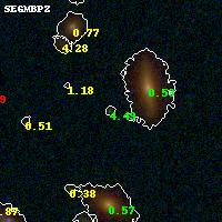 Black segments are analyzed here. Roll mouse over color images to view segments. Best viewed in a wide browser window (1200 pixels or more). Download SED & P(z) plots to view larger versions.