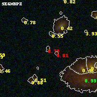 Black segments are analyzed here. Roll mouse over color images to view segments. Best viewed in a wide browser window (1200 pixels or more). Download SED & P(z) plots to view larger versions.
