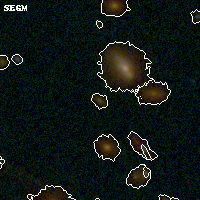 Black segments are analyzed here. Roll mouse over color images to view segments. Best viewed in a wide browser window (1200 pixels or more). Download SED & P(z) plots to view larger versions.