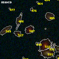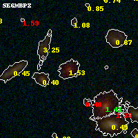Black segments are analyzed here. Roll mouse over color images to view segments. Best viewed in a wide browser window (1200 pixels or more). Download SED & P(z) plots to view larger versions.