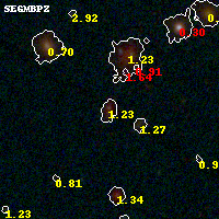 Black segments are analyzed here. Roll mouse over color images to view segments. Best viewed in a wide browser window (1200 pixels or more). Download SED & P(z) plots to view larger versions.