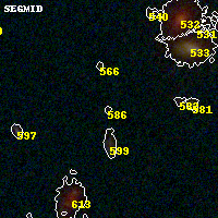 Black segments are analyzed here. Roll mouse over color images to view segments. Best viewed in a wide browser window (1200 pixels or more). Download SED & P(z) plots to view larger versions.