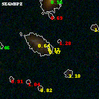 Black segments are analyzed here. Roll mouse over color images to view segments. Best viewed in a wide browser window (1200 pixels or more). Download SED & P(z) plots to view larger versions.