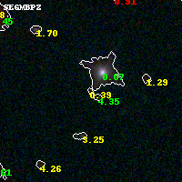 Black segments are analyzed here. Roll mouse over color images to view segments. Best viewed in a wide browser window (1200 pixels or more). Download SED & P(z) plots to view larger versions.