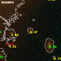 Black segments are analyzed here. Roll mouse over color images to view segments. Best viewed in a wide browser window (1200 pixels or more). Download SED & P(z) plots to view larger versions.