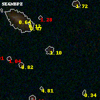 Black segments are analyzed here. Roll mouse over color images to view segments. Best viewed in a wide browser window (1200 pixels or more). Download SED & P(z) plots to view larger versions.