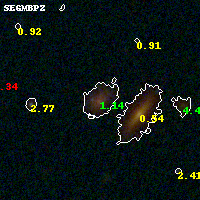 Black segments are analyzed here. Roll mouse over color images to view segments. Best viewed in a wide browser window (1200 pixels or more). Download SED & P(z) plots to view larger versions.