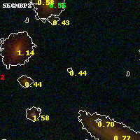 Black segments are analyzed here. Roll mouse over color images to view segments. Best viewed in a wide browser window (1200 pixels or more). Download SED & P(z) plots to view larger versions.