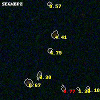 Black segments are analyzed here. Roll mouse over color images to view segments. Best viewed in a wide browser window (1200 pixels or more). Download SED & P(z) plots to view larger versions.