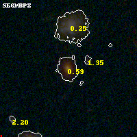 Black segments are analyzed here. Roll mouse over color images to view segments. Best viewed in a wide browser window (1200 pixels or more). Download SED & P(z) plots to view larger versions.