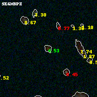 Black segments are analyzed here. Roll mouse over color images to view segments. Best viewed in a wide browser window (1200 pixels or more). Download SED & P(z) plots to view larger versions.