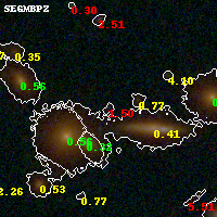 Black segments are analyzed here. Roll mouse over color images to view segments. Best viewed in a wide browser window (1200 pixels or more). Download SED & P(z) plots to view larger versions.